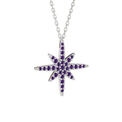 Ametist 18 ayar beyaz altın kolye (40 cm gümüş rolo zincir)