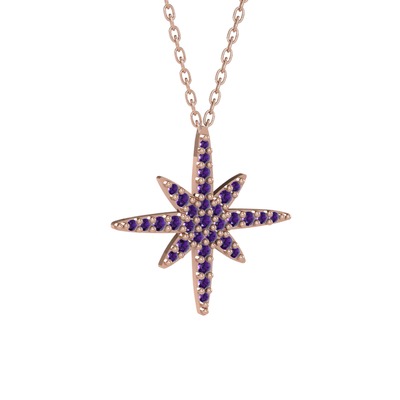 Ametist 18 ayar rose altın kolye (40 cm gümüş rolo zincir)
