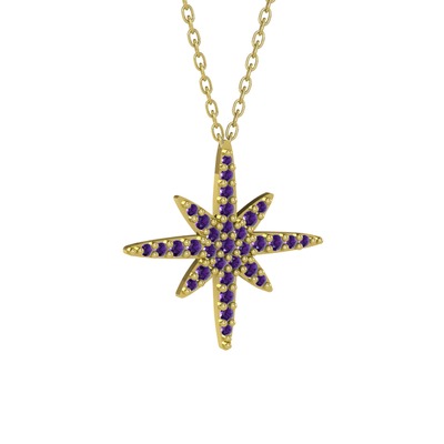 Ametist 925 ayar altın kaplama gümüş kolye (40 cm altın rolo zincir)