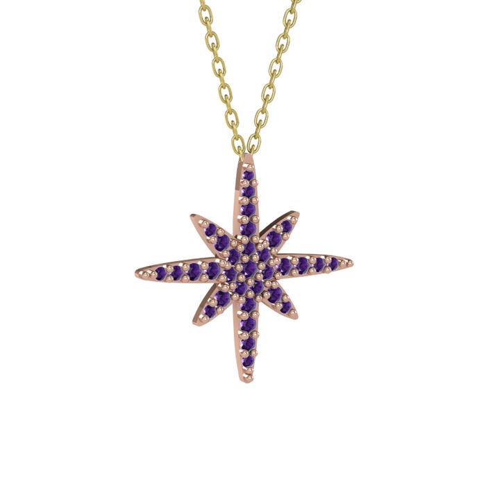 Ametist 925 ayar rose altın kaplama gümüş kolye (40 cm altın rolo zincir)