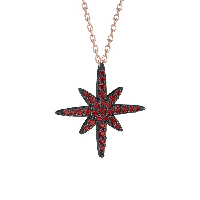 Garnet 925 ayar siyah rodyum kaplama gümüş kolye (40 cm rose altın rolo zincir)