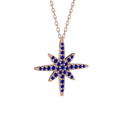 Lab safir 8 ayar rose altın kolye (40 cm gümüş rolo zincir)