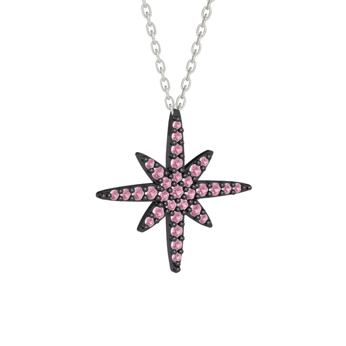 Pembe kuvars 925 ayar siyah rodyum kaplama gümüş kolye (40 cm beyaz altın rolo zincir)