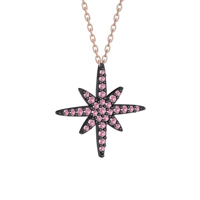 Pembe kuvars 925 ayar siyah rodyum kaplama gümüş kolye (40 cm gümüş rolo zincir)