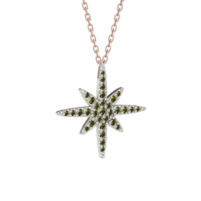 Peridot 925 ayar gümüş kolye (40 cm rose altın rolo zincir)