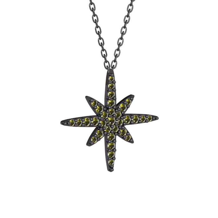 Peridot 925 ayar siyah rodyum kaplama gümüş kolye (40 cm gümüş rolo zincir)