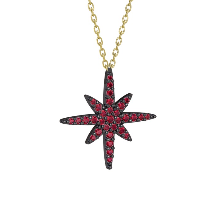 Rodolit garnet 925 ayar siyah rodyum kaplama gümüş kolye (40 cm altın rolo zincir)