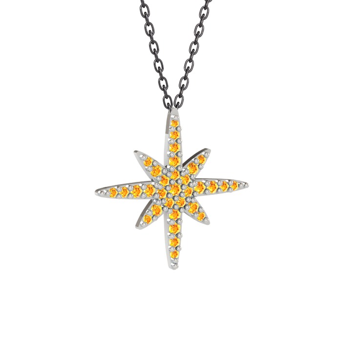 Sitrin 14 ayar beyaz altın kolye (40 cm gümüş rolo zincir)