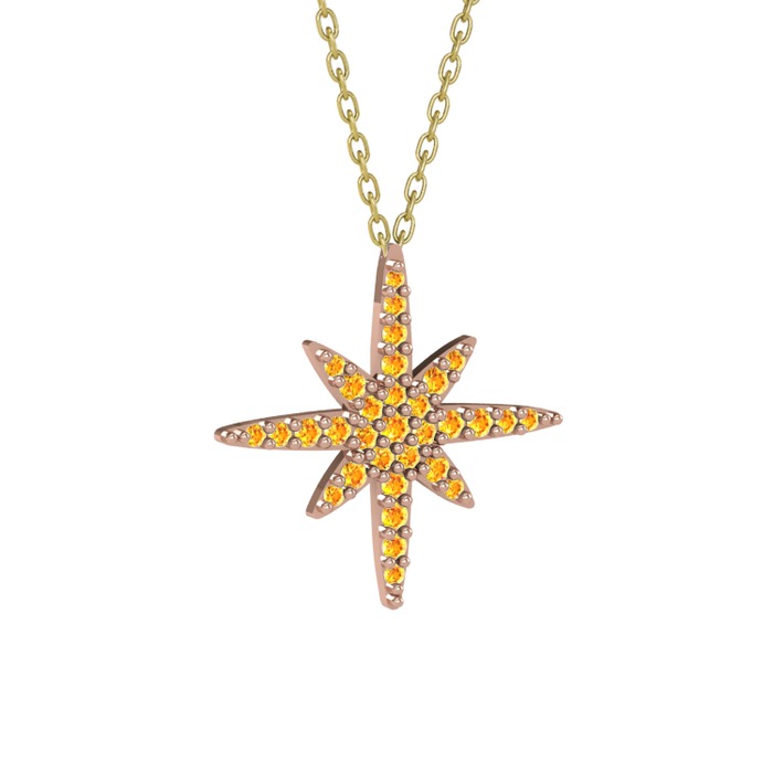 Sitrin 18 ayar rose altın kolye (40 cm altın rolo zincir)