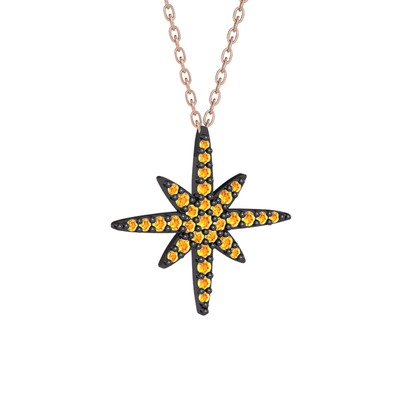 Sitrin 925 ayar siyah rodyum kaplama gümüş kolye (40 cm rose altın rolo zincir)