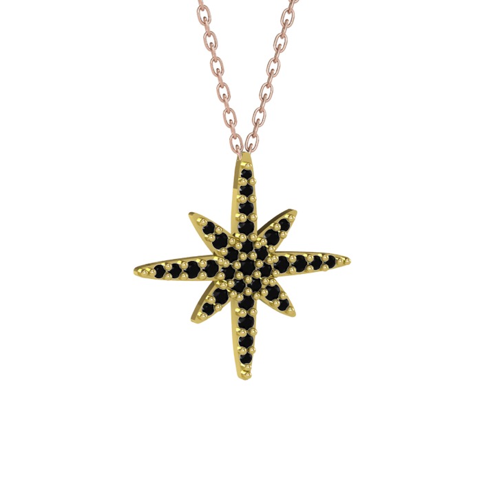 Siyah zirkon 14 ayar altın kolye (40 cm gümüş rolo zincir)