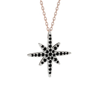 Siyah zirkon 14 ayar beyaz altın kolye (40 cm gümüş rolo zincir)