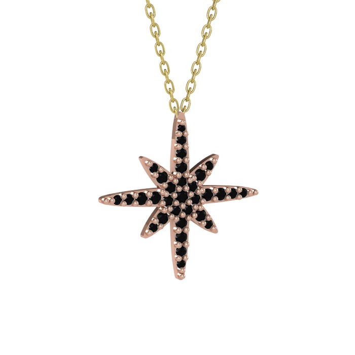 Siyah zirkon 14 ayar rose altın kolye (40 cm altın rolo zincir)