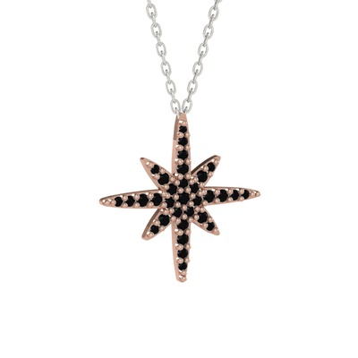 Siyah zirkon 8 ayar rose altın kolye (40 cm beyaz altın rolo zincir)