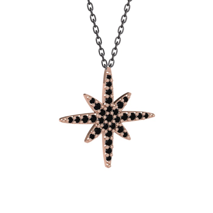 Siyah zirkon 8 ayar rose altın kolye (40 cm gümüş rolo zincir)