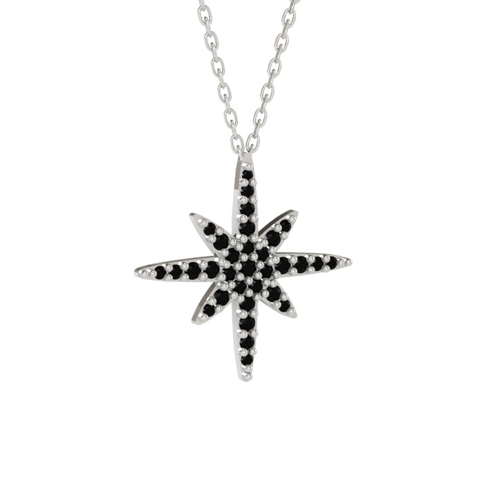 Siyah zirkon 925 ayar gümüş kolye (40 cm beyaz altın rolo zincir)