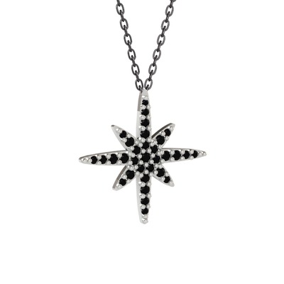 Siyah zirkon 925 ayar gümüş kolye (40 cm gümüş rolo zincir)