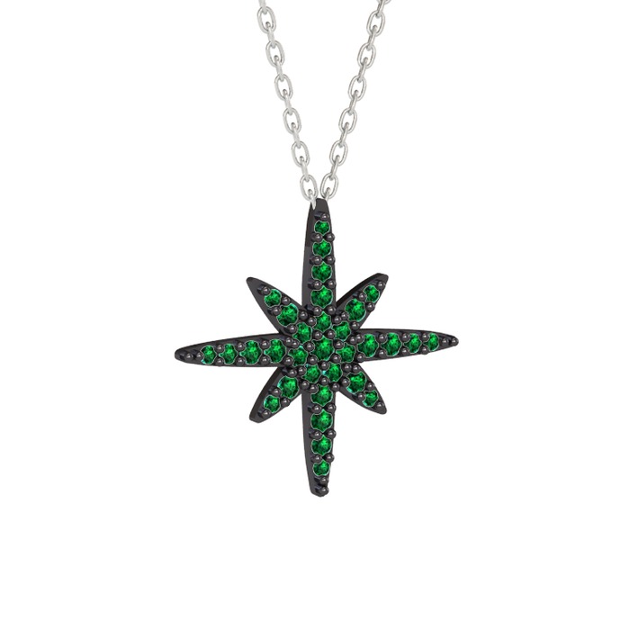 Yeşil kuvars 925 ayar siyah rodyum kaplama gümüş kolye (40 cm beyaz altın rolo zincir)
