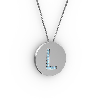 Akuamarin 14 ayar beyaz altın kolye (40 cm gümüş rolo zincir)