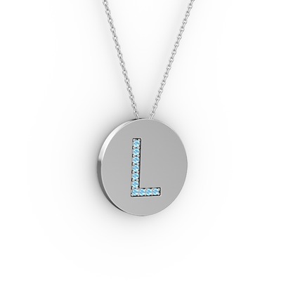 Akuamarin 18 ayar beyaz altın kolye (40 cm gümüş rolo zincir)