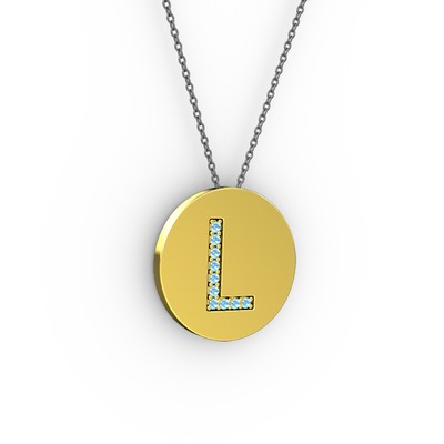 Akuamarin 8 ayar altın kolye (40 cm gümüş rolo zincir)