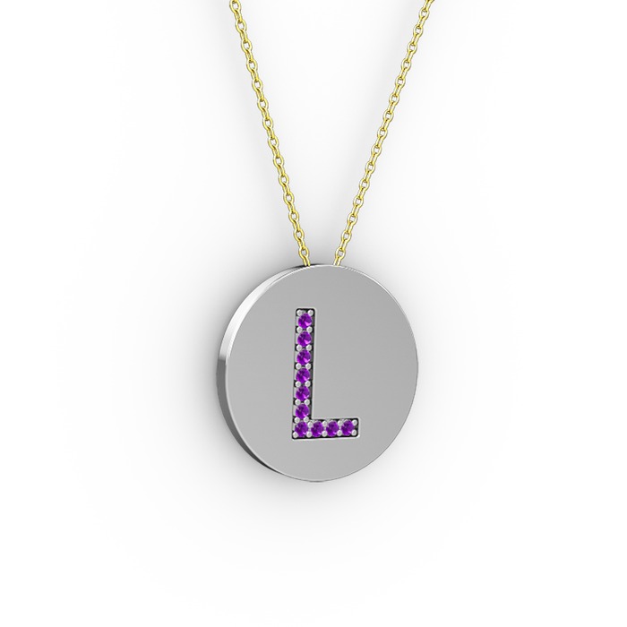 Ametist 8 ayar beyaz altın kolye (40 cm altın rolo zincir)