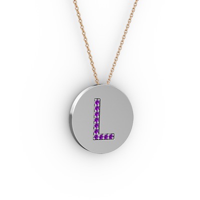 Ametist 8 ayar beyaz altın kolye (40 cm rose altın rolo zincir)