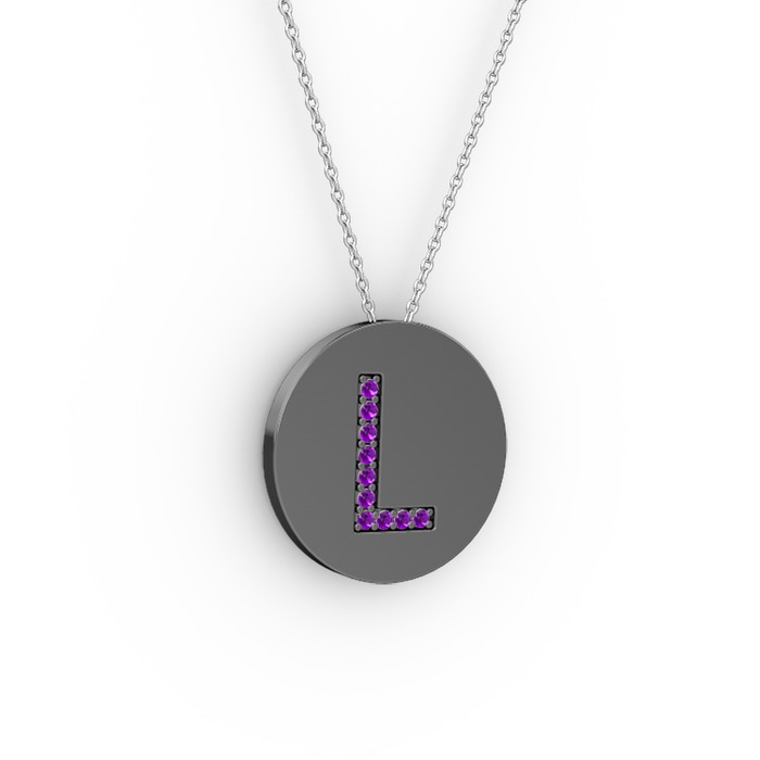 Ametist 925 ayar siyah rodyum kaplama gümüş kolye (40 cm beyaz altın rolo zincir)