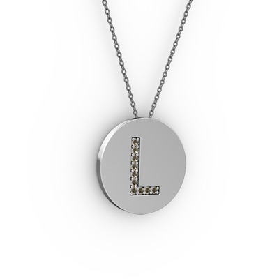 Dumanlı kuvars 8 ayar beyaz altın kolye (40 cm gümüş rolo zincir)