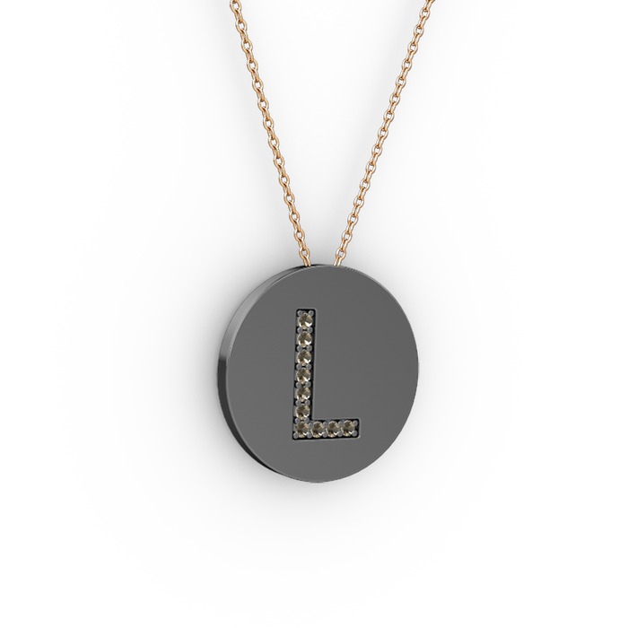 L Baş Harf Kolye - Dumanlı kuvars 925 ayar siyah rodyum kaplama gümüş kolye (40 cm gümüş rolo zincir)