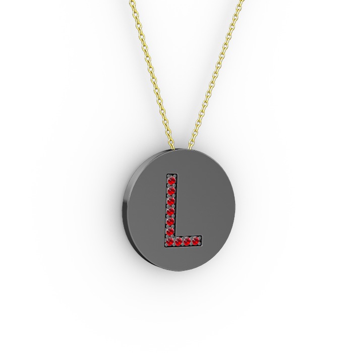 Garnet 925 ayar siyah rodyum kaplama gümüş kolye (40 cm altın rolo zincir)