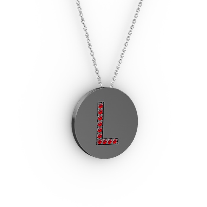 Garnet 925 ayar siyah rodyum kaplama gümüş kolye (40 cm beyaz altın rolo zincir)