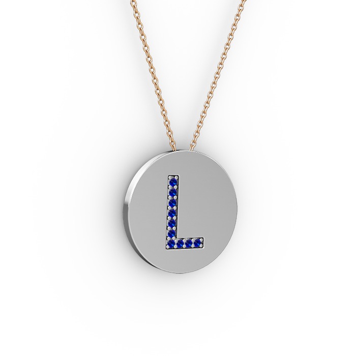 Lab safir 14 ayar beyaz altın kolye (40 cm rose altın rolo zincir)