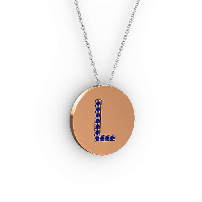 Lab safir 8 ayar rose altın kolye (40 cm beyaz altın rolo zincir)
