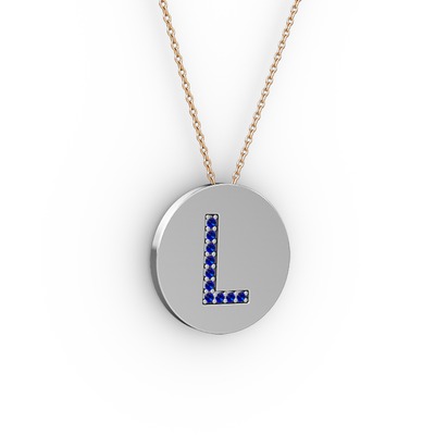 Lab safir 925 ayar gümüş kolye (40 cm rose altın rolo zincir)