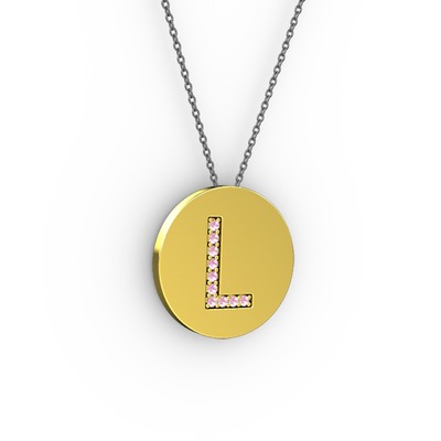 Pembe kuvars 18 ayar altın kolye (40 cm gümüş rolo zincir)