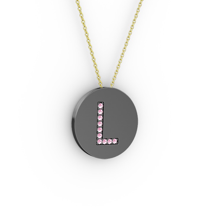 Pembe kuvars 925 ayar siyah rodyum kaplama gümüş kolye (40 cm gümüş rolo zincir)