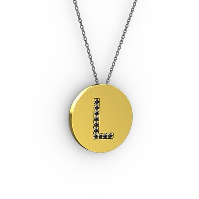 Siyah zirkon 14 ayar altın kolye (40 cm gümüş rolo zincir)