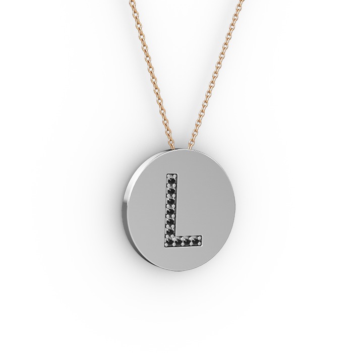 Siyah zirkon 18 ayar beyaz altın kolye (40 cm rose altın rolo zincir)