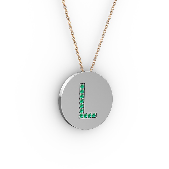 Yeşil kuvars 18 ayar beyaz altın kolye (40 cm rose altın rolo zincir)