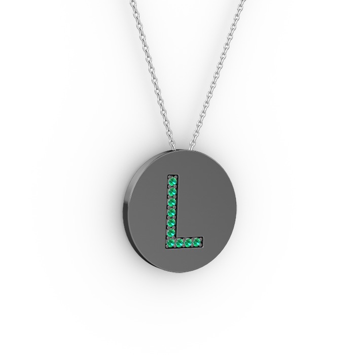 Yeşil kuvars 925 ayar siyah rodyum kaplama gümüş kolye (40 cm beyaz altın rolo zincir)