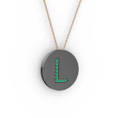 Yeşil kuvars 925 ayar siyah rodyum kaplama gümüş kolye (40 cm rose altın rolo zincir)