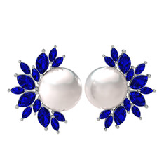 Inci ve lab safir 925 ayar altın kaplama gümüş küpe