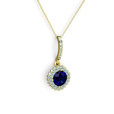 Akuamarin ve lab safir 8 ayar rose altın kolye (40 cm gümüş rolo zincir)