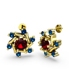 Rodolit garnet ve lab safir 8 ayar altın küpe