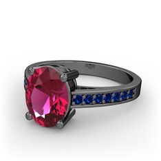 Lab safir ve garnet 925 ayar siyah rodyum kaplama gümüş yüzük