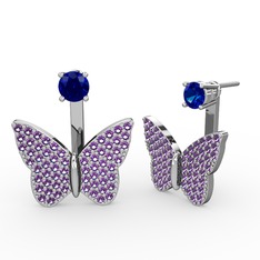 Ametist ve lab safir 8 ayar beyaz altın küpe