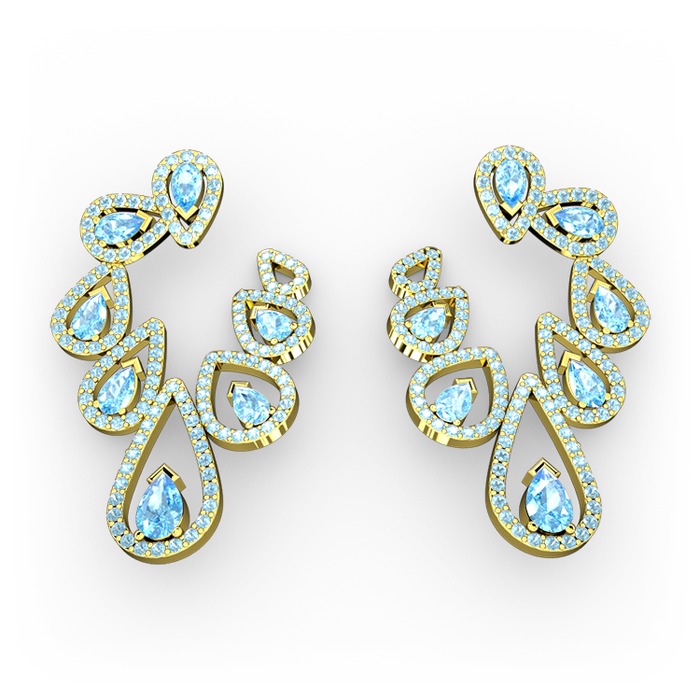 Akuamarin 14 ayar altın küpe