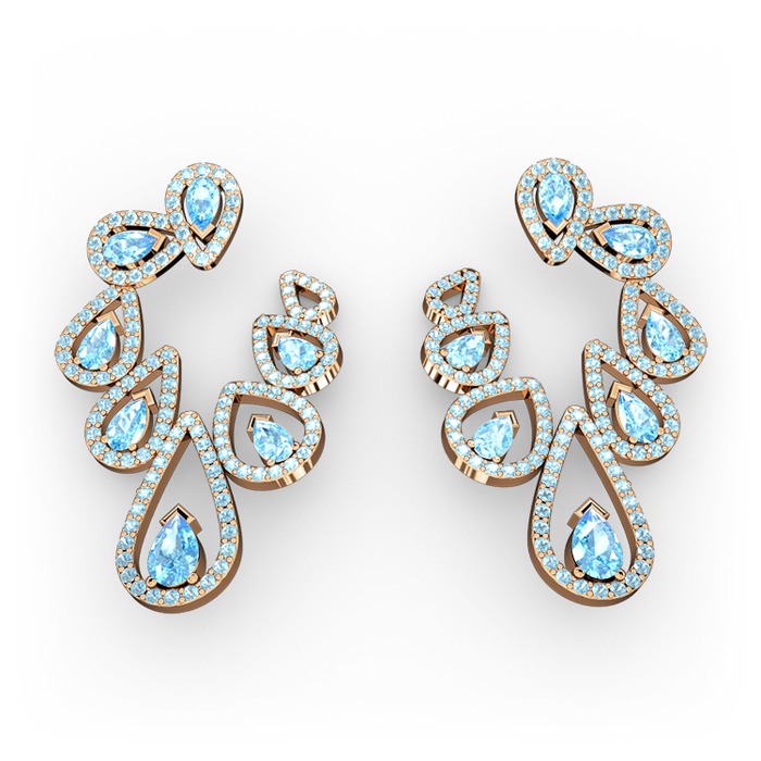 Akuamarin 8 ayar rose altın küpe