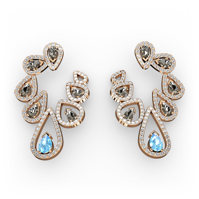 Akuamarin, dumanlı kuvars ve pırlanta 925 ayar rose altın kaplama gümüş küpe (2.882 karat)